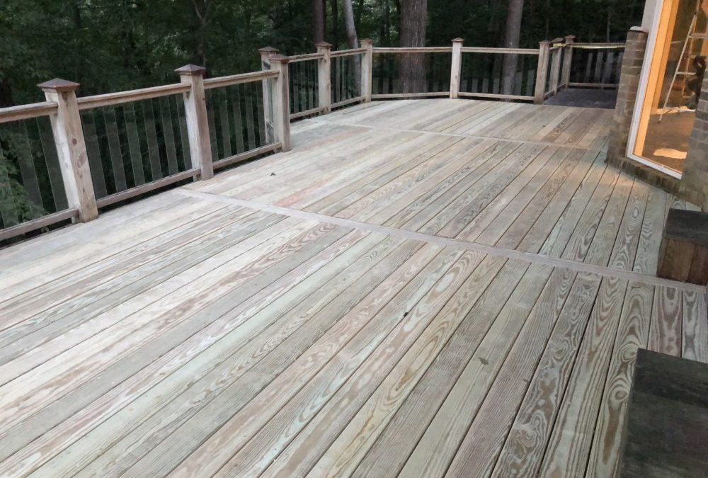 IMG_1305 Multy section wooden deck with railing, posts with caps by Editor | May 28, 2019 Multy section wooden deck with railing, posts with caps
