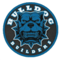 Bulldog Builders Logo. Round Blue, white, and navy colors